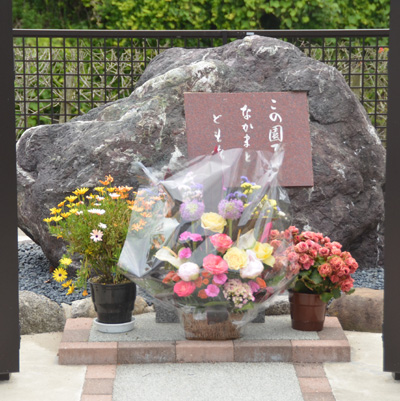 石碑(朋碑)にお花を供えてくださったのは以前暮らしていたレオンベルガーが亡くなったためです。