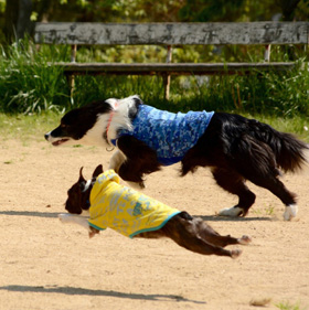 喜んで頂いて良かったです!僕達も嬉しいです。必ずしもあのように両親犬と会って頂けるわけではないですが、今回はタイミングも良かったです。お話してくださっていたボーダーコリーとの写真ですね!さすがはボストンテリア「ボタロー」ですが、この写真をこれだけきれいに撮れていることの方が僕たちにとっては驚きです。またこれからも楽しい写真、面白い写真、決定的瞬間などいろいろな写真をお待ちしてます(笑)。それでは、2頭目のボストンテリア(弟か妹)の出産をお楽しみに!秋以降ということですから、気長にお待ちくださいね!モトコランド 井上