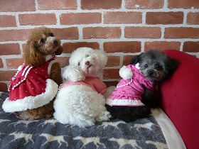 今回、他のワンちゃんは着ていますが、クッキーは着ていないでしょ。