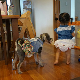 娘が生まれて1年、ソラには我慢させてしまった1年ですがソラも娘のことを暖かく見守り、時にはジャレて一緒に遊び、三輪車のペースに合わせて横を気にしながら歩きとても優しいお姉さんをしてくれています。