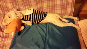 今年の夏は蒸し暑かったですが、アーディは体調を崩すことなく元 気です。さすがにドッグランに連れて行くのは暑いので、朝早くに近所の河川敷を走り回ったりしました。アーディ水が苦手なようで、庭で水遊びをしようとしても、興味を示さず逃げてます^^; 昼間はソファーを独り占めし て伸び伸びとして寝ています(^ー^)