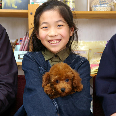 実は写真中央に写っている娘さんは犬が苦手でした。初めて来舎されたときもその様子は分かりましたが、一目見てトイプードルの子犬を迎え入れたい気持ちが勝るようになりました。