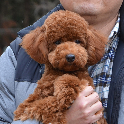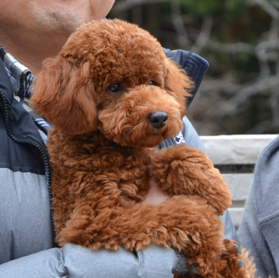 トイプードルは少食な子が多いですが、ミントはとてもよく食べてくれます。食べさせ過ぎさえしなければ、体型(肉付き)は維持しやすい子です。偏食させないようにしましょう。骨太なので毛量が多く、毛色は濃い目のレッドです。