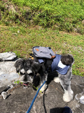 石畳みの河川敷も、はじめ怖がって下りようとしませんでしたが、大丈夫と安心させてあげたら自分からしっかり登り下りてくれました