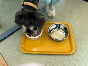 畳のお座敷でご飯を食べるミニチュアシュナウザーというのは