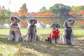 この間、インスタで知り合ったモトコランドさんのシュナウザー、オレオくん、ナイトくん、アニーちゃんと、大阪の服部緑地公園でお
