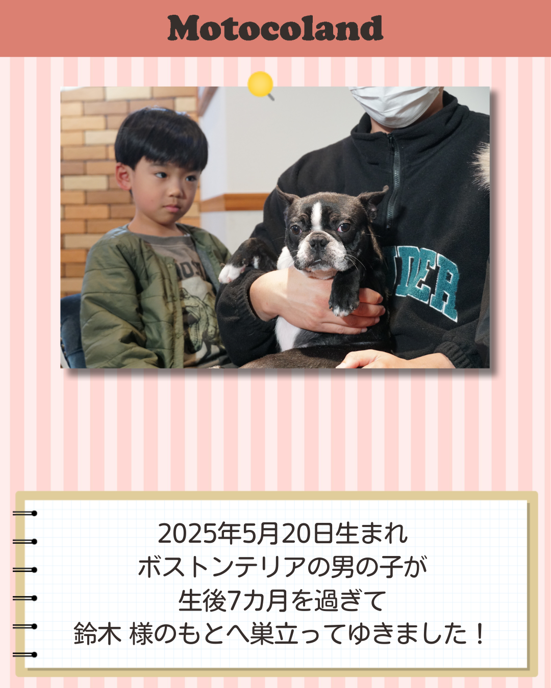 2025年5月20日生まれのボストンテリア(男の子)が三重県の鈴木様のもとへ巣立ってゆきました!