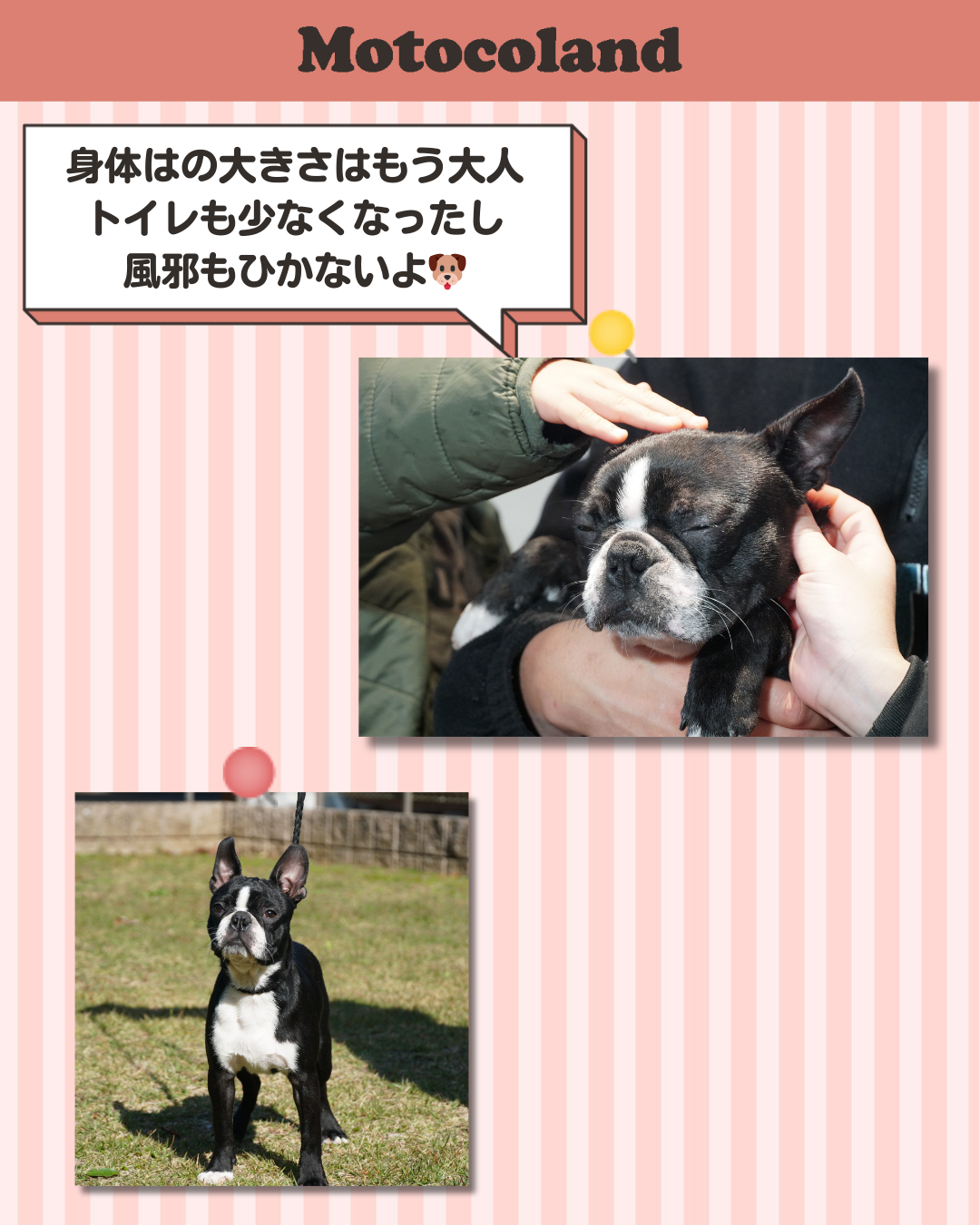 ちなみに海外から犬を輸入するときは最短でも12~13カ月齢になります。それまでずっとブリーダーさんのもとで暮らします。ですので、輸入犬はみな安定感があって育てやすいです。
