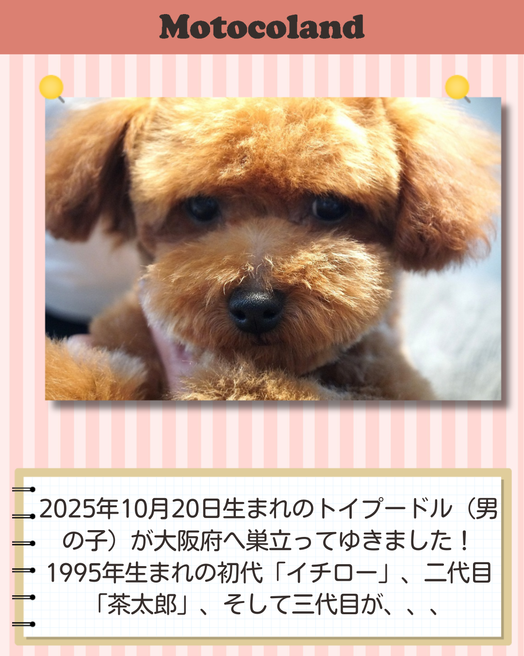 2025年10月20日生まれのトイプードル(レッドの男の子)が大阪府の樫山様のもとへと巣立ってゆきました!