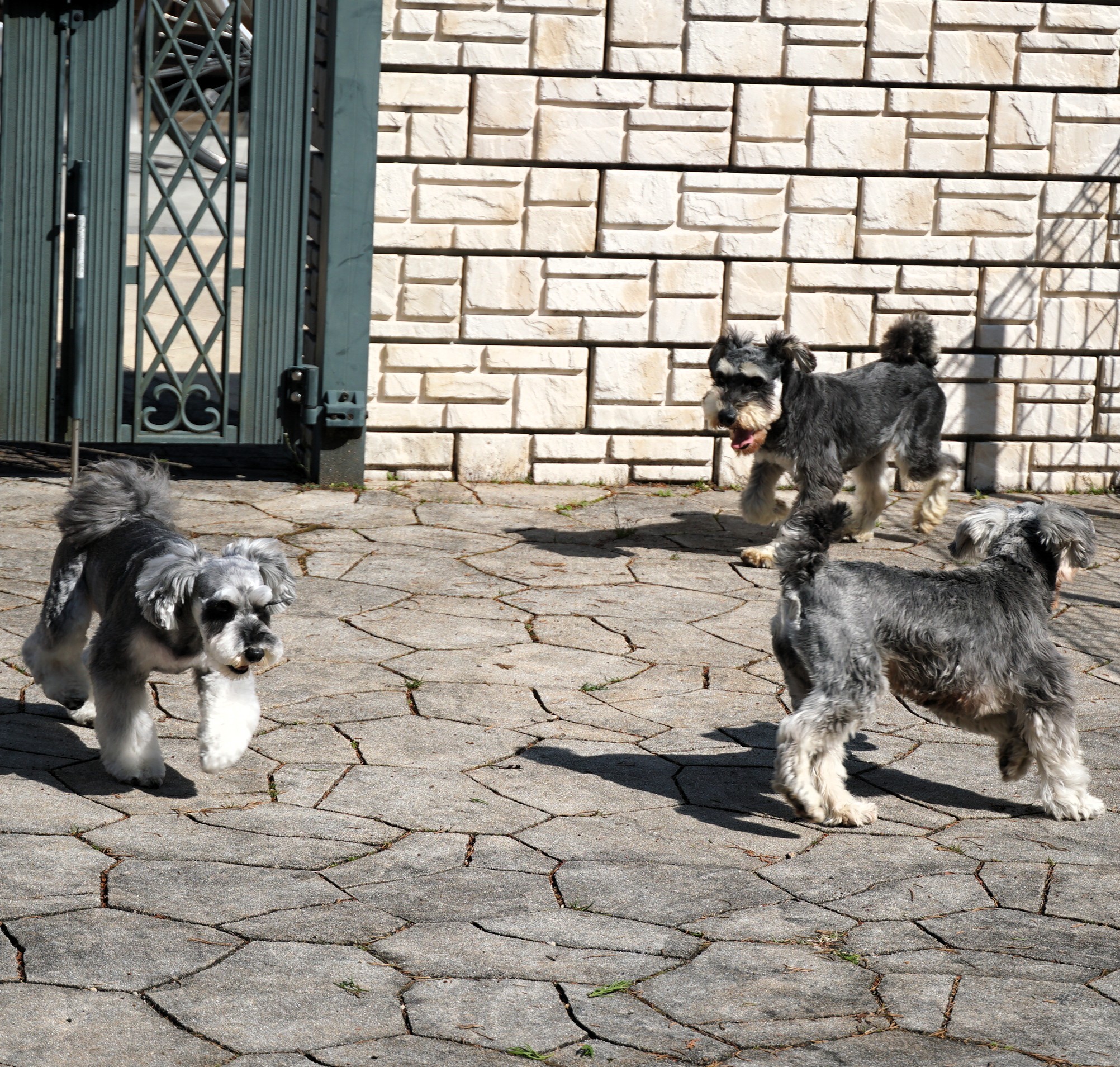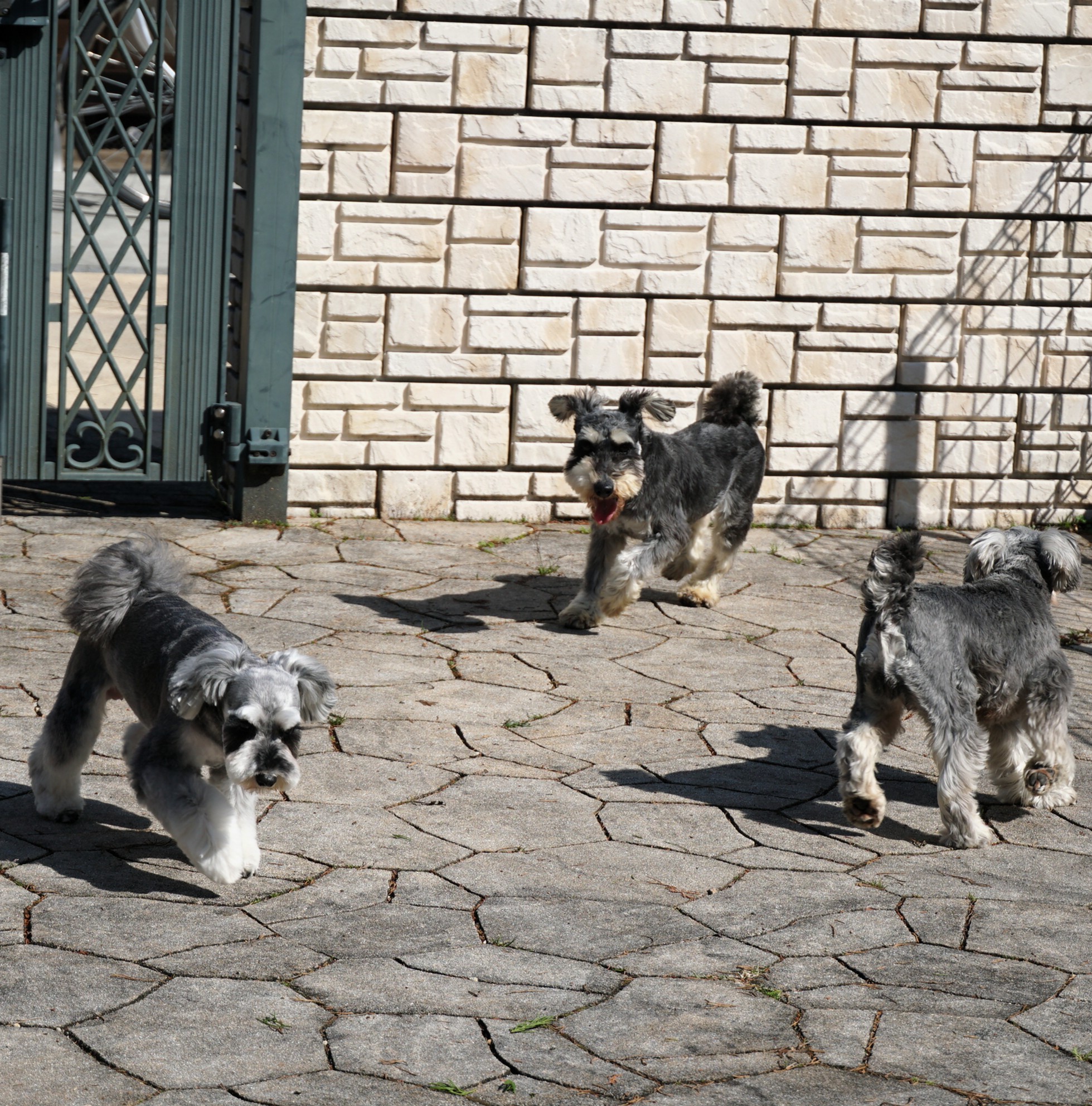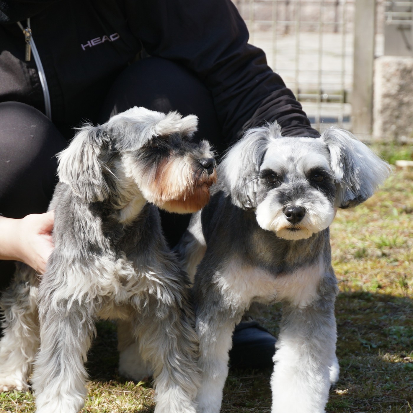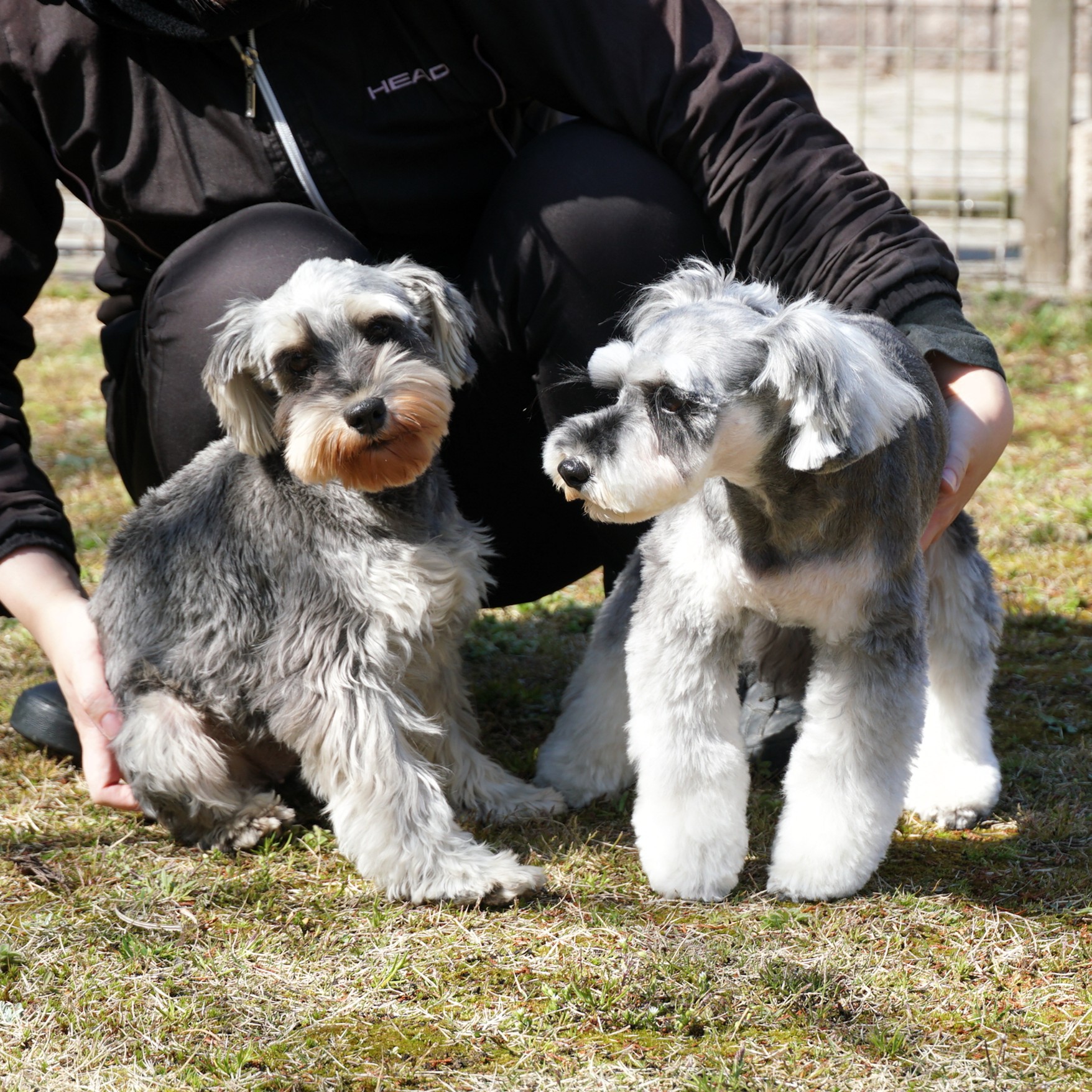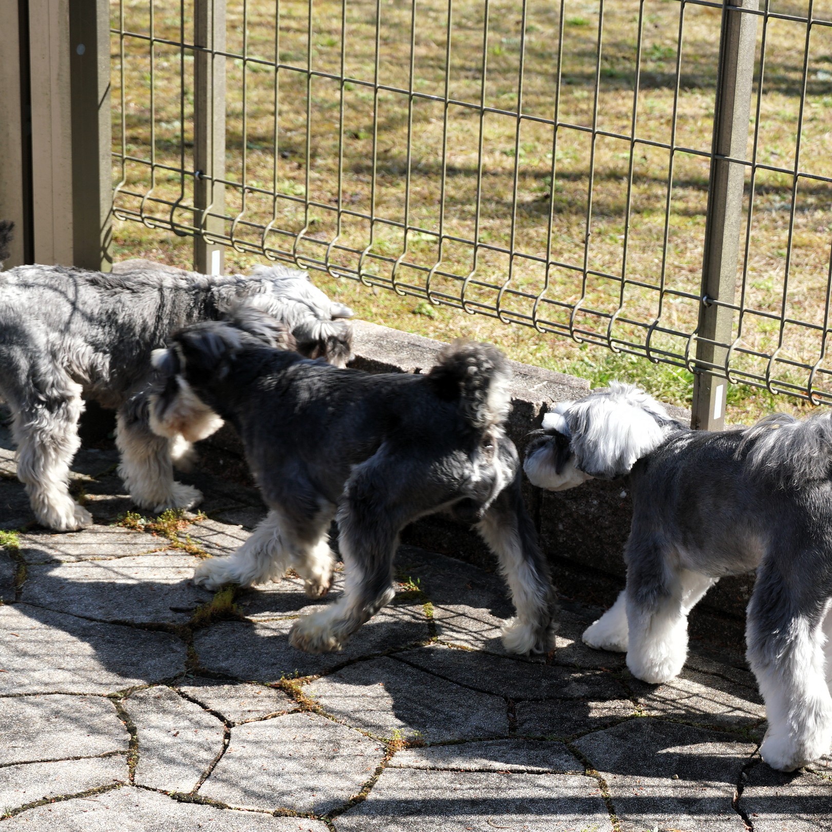 運動場では合宿犬のホワイトシュナウザー「樹」(男の子)や「ルイ」(女の子)に自ら遊びに誘っていました。上手に遊べていましたよ。